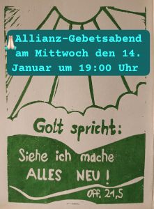 Herzliche Einladung zum Gebetsabend am 14. Januar um 19 Uhr