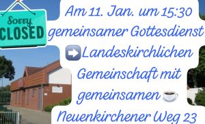 Herzliche Einladung zum gemeinsamen Gottesdienst mit Kaffee am 11. Januar um 15:30 Uhr in der Landeskirchlichen Gemeinschaft